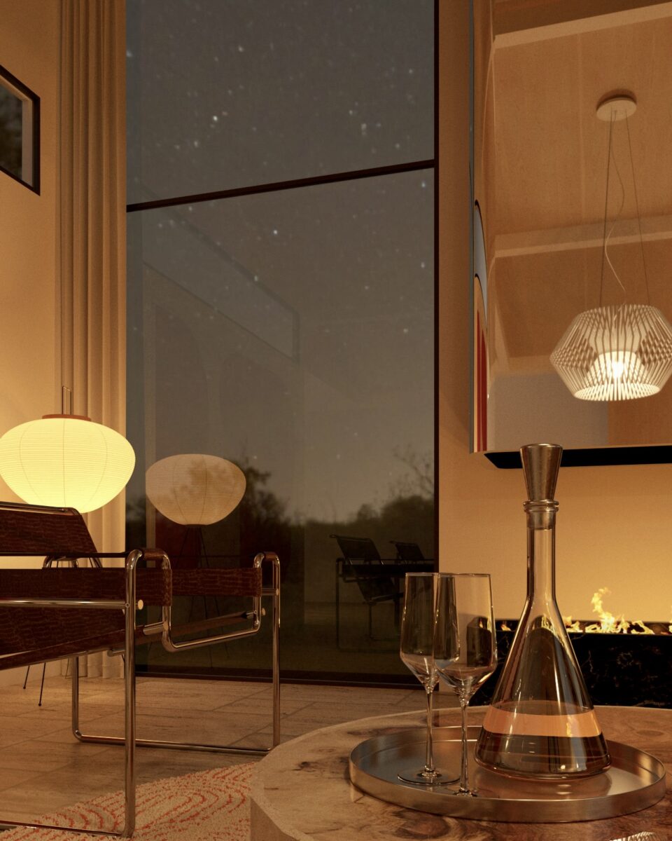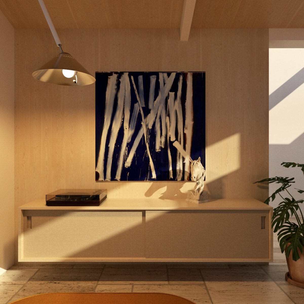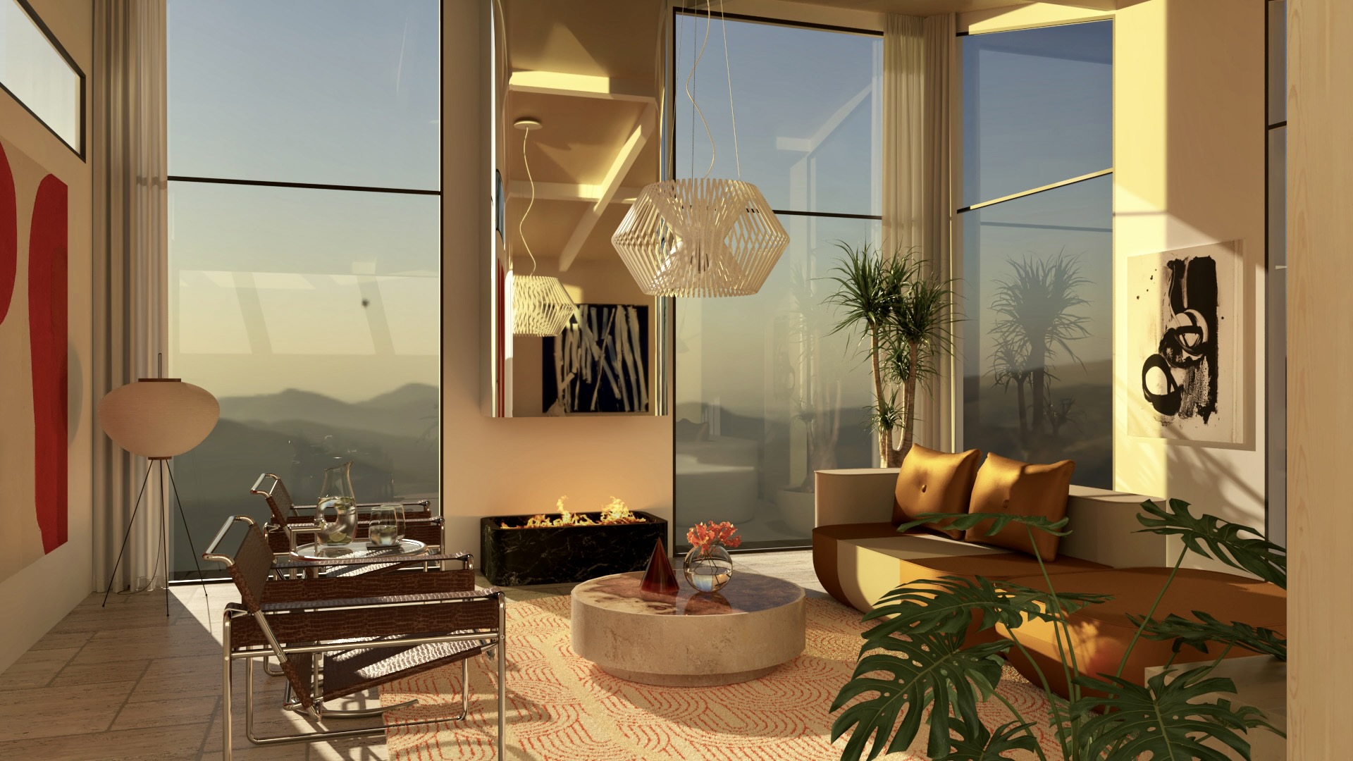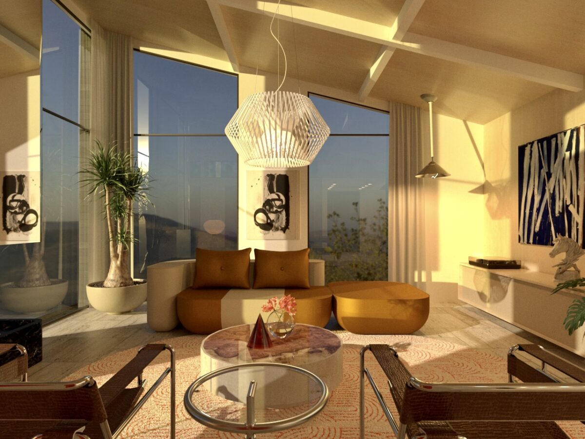 Create a contemporary living room based on Australian critical regionalism and a suite of photorealistic renders to communicate design concepts.