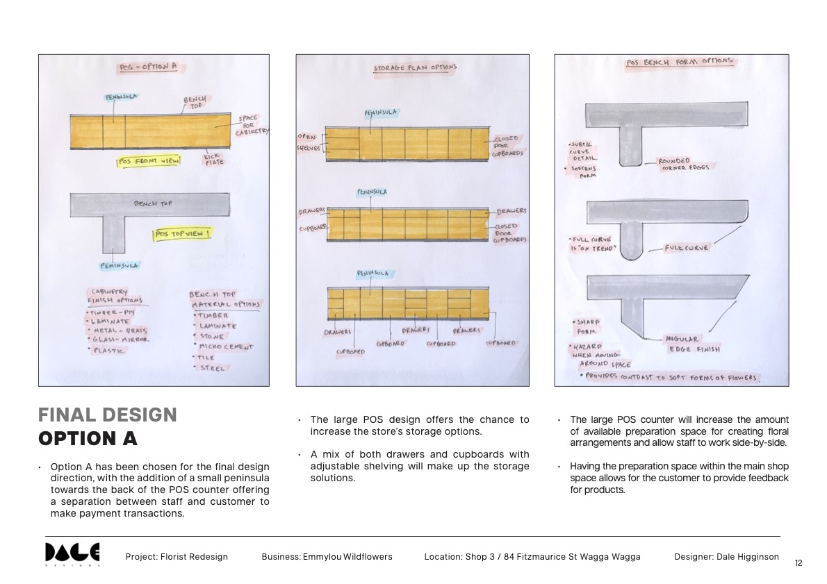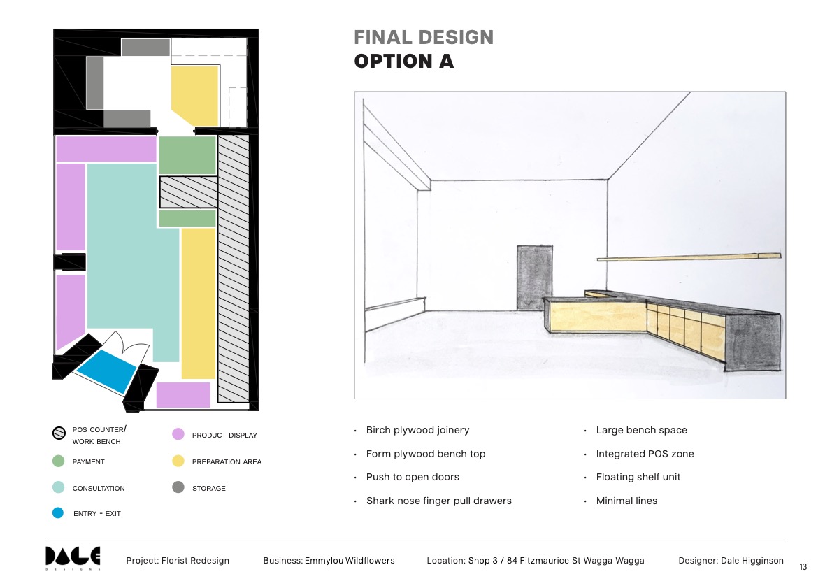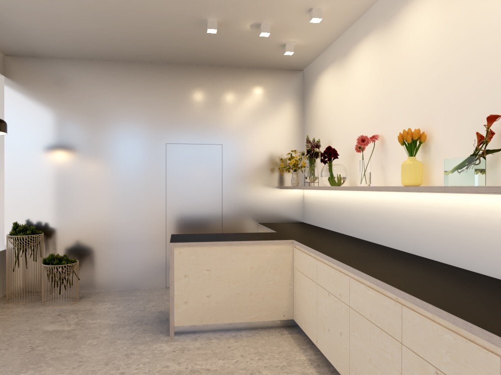 Produce a spatial design solution for a small independent florist and a new Point of Sale (POS) unit.